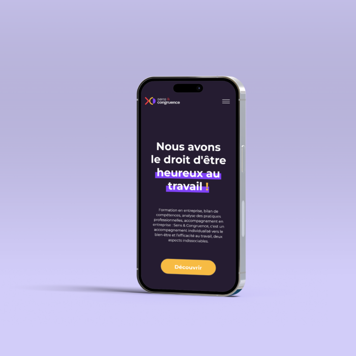 Au-delà de la création de logo et de la charte graphique, nous avons développé un site internet professionnel, pensé pour optimiser la visibilité en ligne de Sens & Congruence.